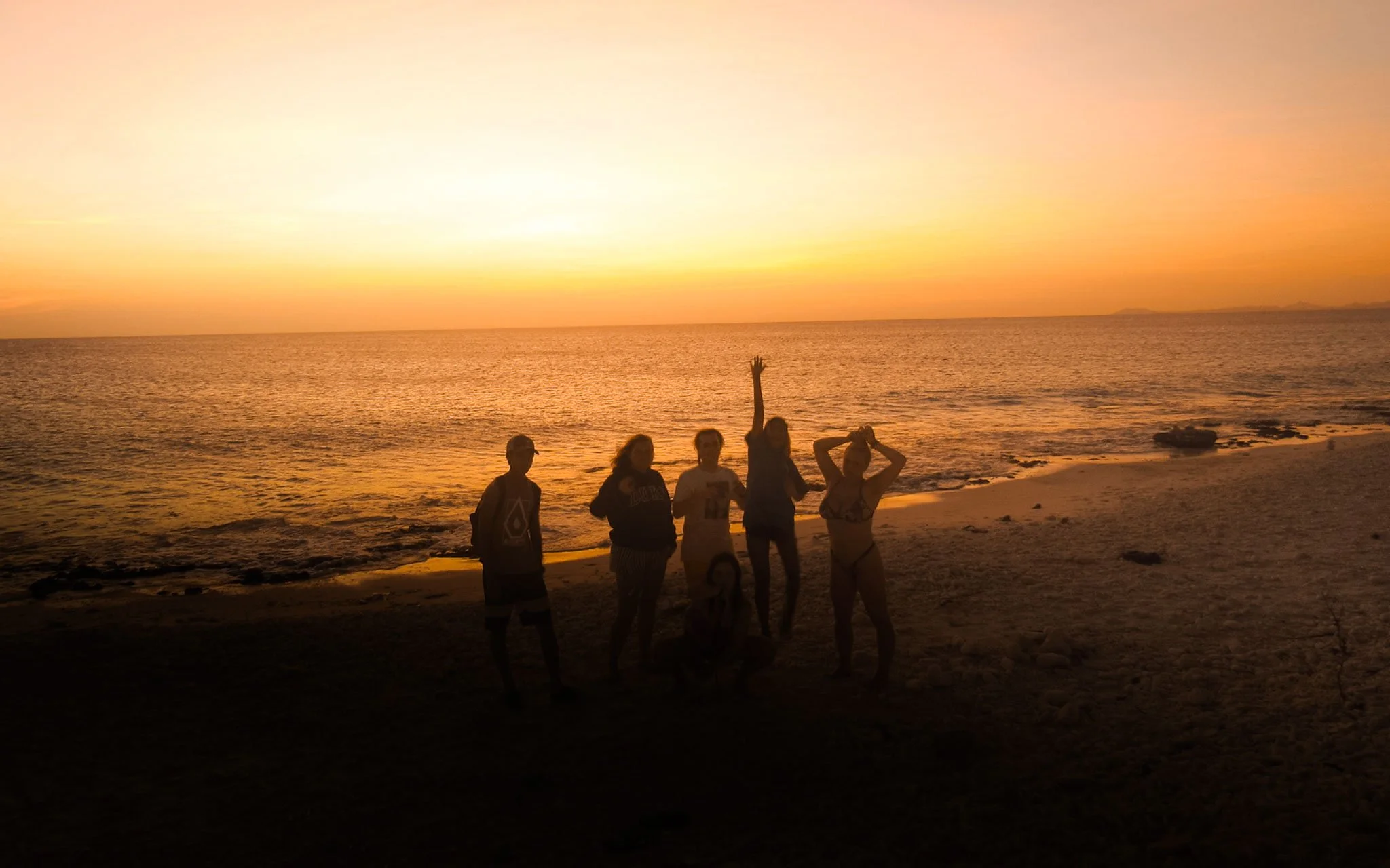 Watching the sunset from the beach with new friends.